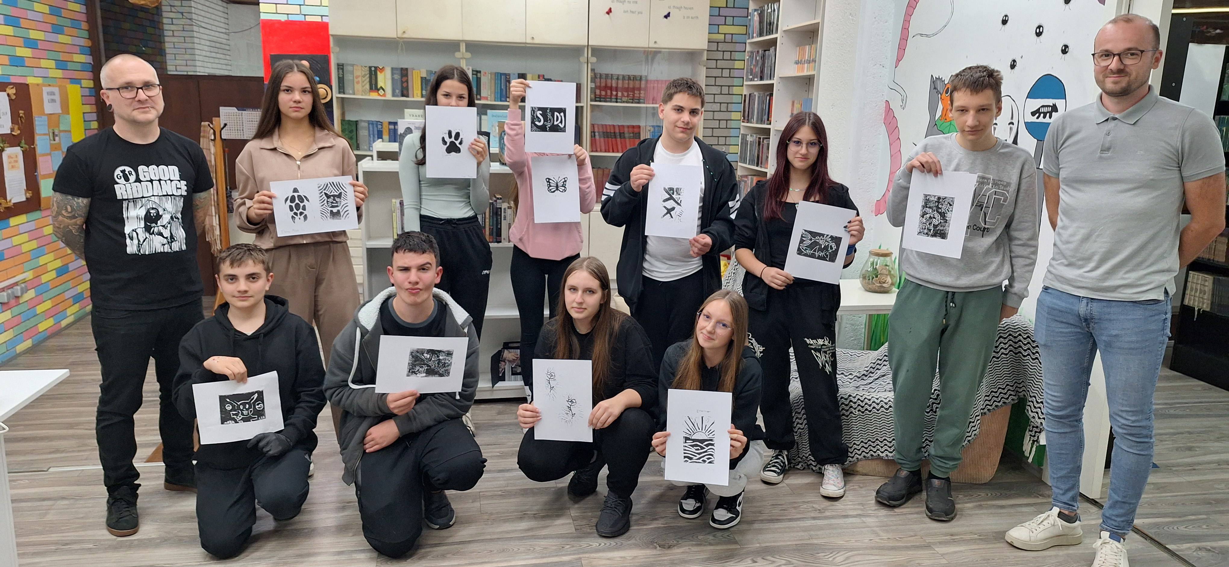 Radionicu je vodio gospodin Tomislav Sertić iz Koprivnice koji se nekoliko godina bavi linorezom i član je Ateliera Koprivnica. Uz njegovo stručno vodstvo u izradi i vodstvo profesora Likovne umjetnosti Gorana Dujakovića učenici su bogatiji za praktično iskustvo.