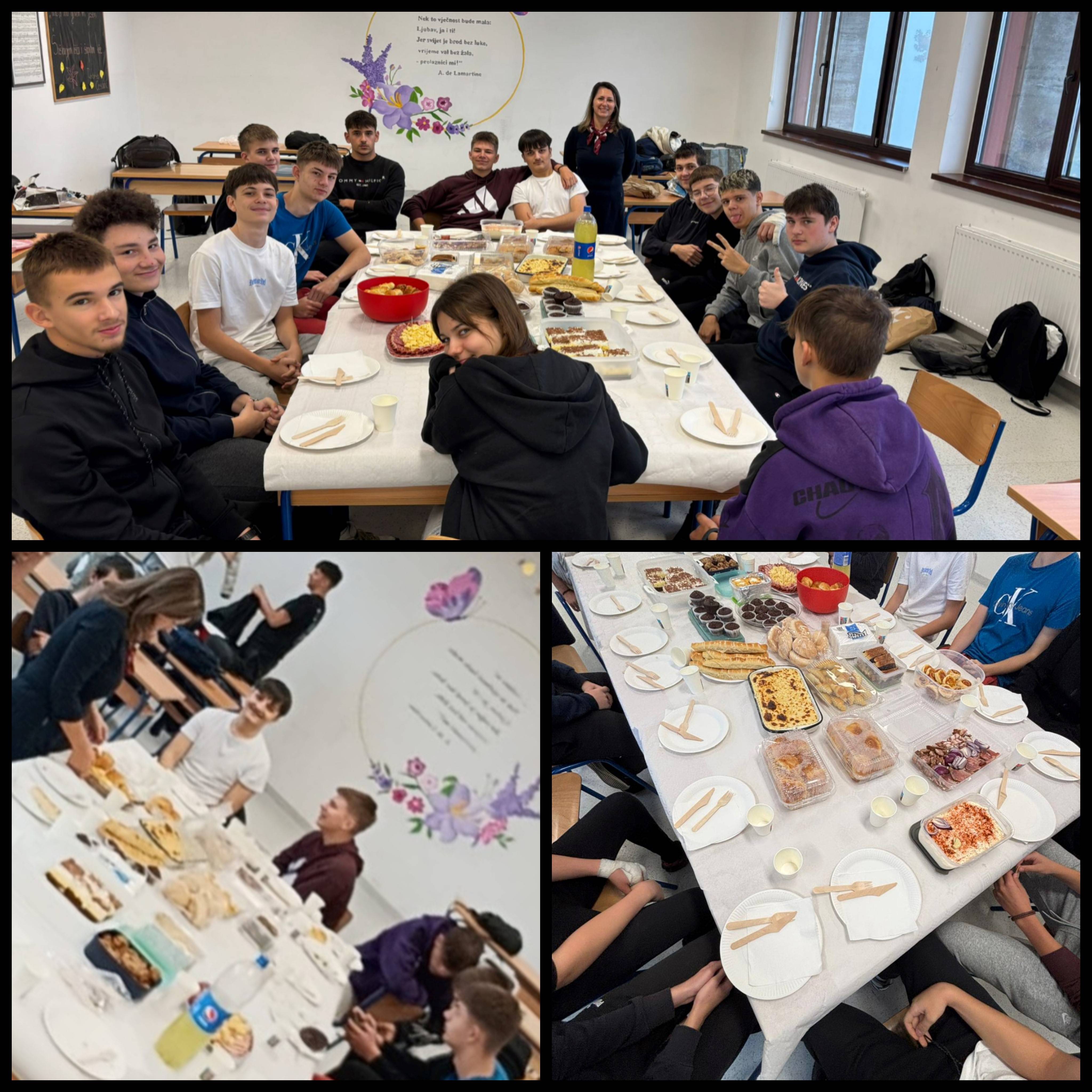 Učenici 2. b razreda obilježili su Svjetski dan hrane zajedničkim doručkom prepunim domaćih delicija — od zapečene prosene kaše i kukuruzne zlevanke do domaćih pekarskih proizvoda, kolača, keksa, sokova… 🍪🌾