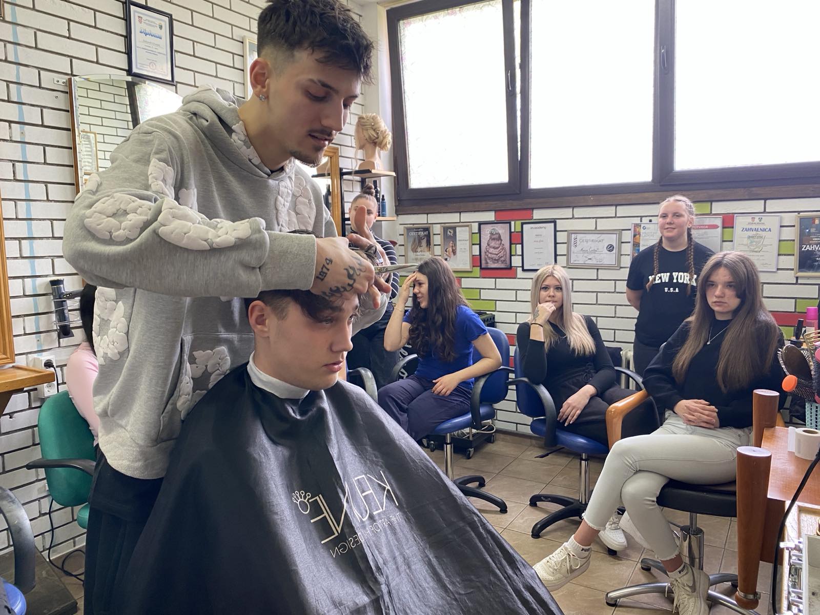Kroz praktične demonstracije i korisne savjete, Petar je približio suvremene tehnike muškog šišanja, stiliziranja i njege kose. Učenice su imale priliku postavljati pitanja, učiti iz prve ruke te promatrati profesionalca na djelu i s njim zajedno raditi na modelu.