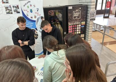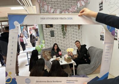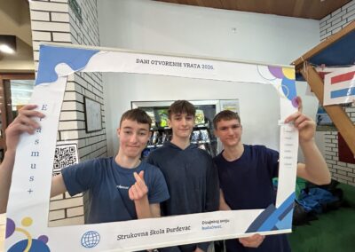 Poseban doprinos dali su i učenici 4.b razreda – Patrik Zlatec, Florian Axel Stankić i Borna Čokić – koji su u podcast kutku snimali razgovore o svom Erasmus iskustvu te aktivno sudjelovali u provedbi aktivnosti.
