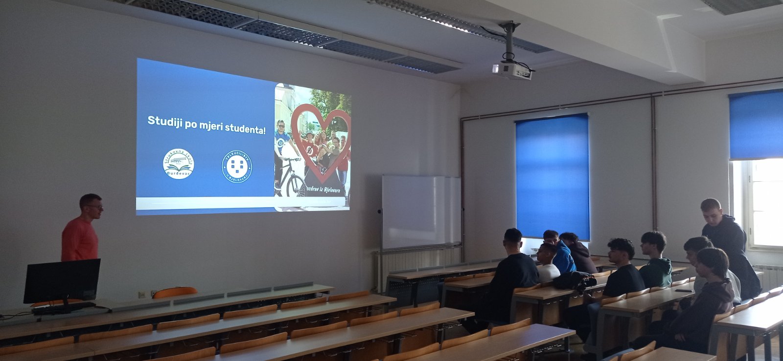 Učenici Strukovne škole Đurđevac završnih razreda tehničar za mehatroniku i tehničar za računalstvo posjetili su 21. travnja 2026. Veleučilište u Bjelovaru u pratnji nastavnika Dejana Rakijašića i Slavka Majstorovića. Učenike je po dolasku pozdravio voditelj smjera mehatronike, Goran Benkek te ih proveo kroz labose u kojima studenti stječu praktična znanja i vještine. Prodekan za nastavu i studente, Zoran Vrhovski kroz kratku prezentaciju upoznao ih je sa studijskim programima i prednostima studiranja u Bjelovaru. Potom su imali priliku vidjeti kakve uvjete nudi novi studentski dom i studentski restoran.