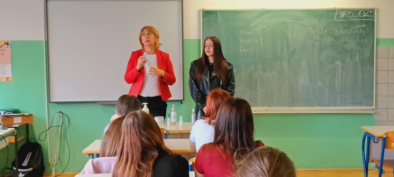 Učenica 3.f razreda, zanimanja kozmetičar, Larisa Mustač i njena nastavnica Željka Grobenski Senjan u OŠ “Antun Nemčić Gostovinski” u Koprivnici predstavile su našu školu i svoje zanimanje. Tom prilikom Larisa je svojoj nastavnici asistirala u predavanju na temu sredstava za čišćenje kože.