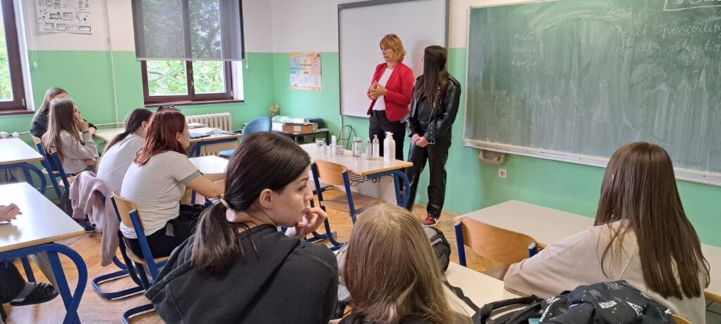 Predavanju je prisustvovalo 25 učenica završnih, osmih razreda, koje se pokazale osobit interes za upis u ovo zanimanje. Učenice su sa zanimanjem pratile predavanje i sudjelovale u praktičnoj primjeni sredstava za čišćenje kože.