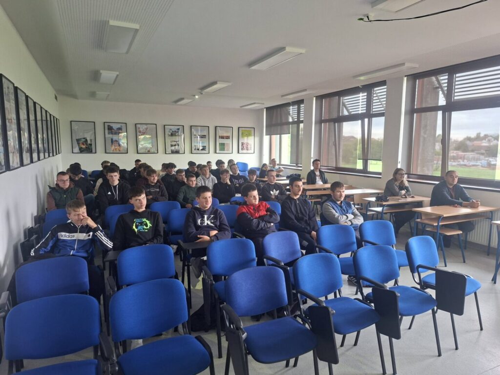 Predstavnici tvrtke učenicima su kroz prezentaciju i video materijale prezentirali kompletan tehnološki proces pakiranja, opseg poslova održavanja strojeva te mogućnosti koje im se nude kroz stručnu praksu u proizvodnom pogonu.