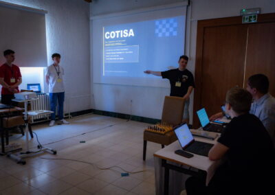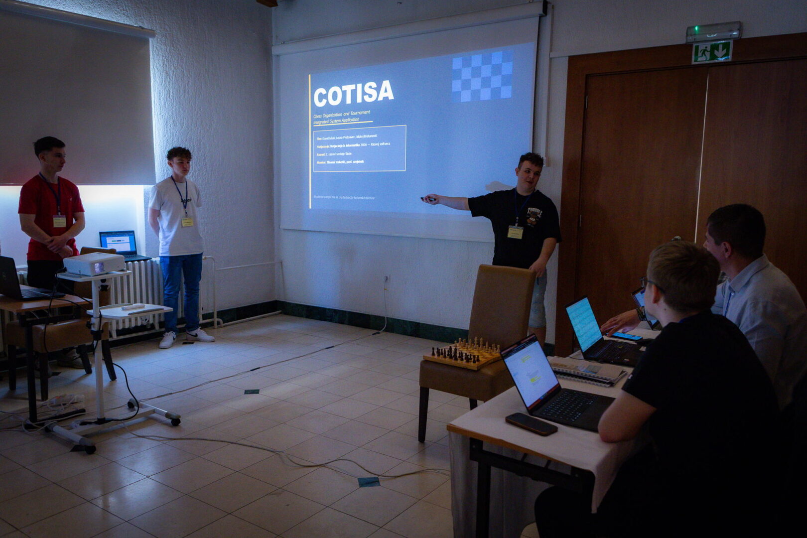 David, Lovro i Matej razvili su aplikaciju COTISA – web platformu za organizaciju i upravljanje šahovskim turnirima sa web i mobilnim sučeljem. Tim COTISA je istoimenu aplikaciju prezentirao pred stručnim povjerenstvom koje je ocjenjivalo prezentaciju, tehničku dokumentaciju, originalnost, primjenjivost i, za učenike njihovog uzrasta, najzahtjevniju stavku – pridržavanje modernih konvencija softverskog inženjerstva. Naši učenici su na ovom prestižnom natjecanju u društvu najelitnijih hrvatskih škola  osvojili treće mjesto i svojim rezultatom još jednom dokazali kvalitetu naše škole te visokih standarda po kojima pripremamo tehničare za računalstvo za svijet rada i studiranje na elitnim informatičkim fakultetima.